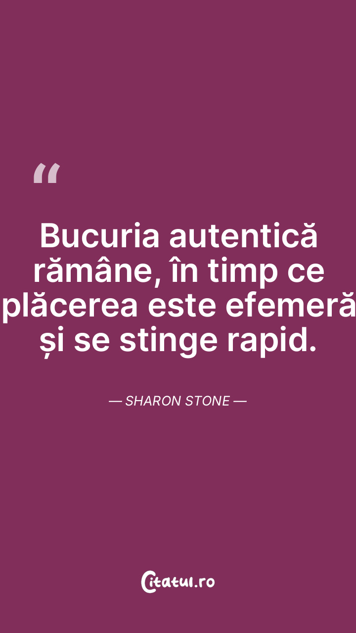 Bucuria autentică rămâne, în timp ce plăcerea este efemeră și se stinge rapid. Sharon Stone