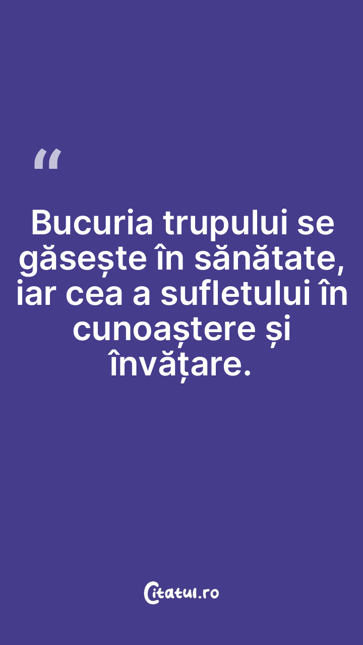 Bucuria trupului se găsește în sănătate, iar cea a sufletului în cunoaștere și învățare.