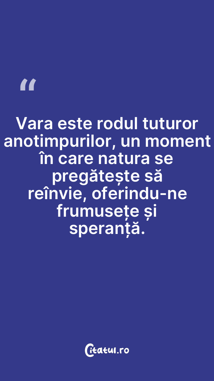 Vara este rodul tuturor anotimpurilor, un moment î...