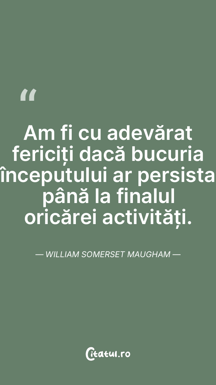Am fi cu adevărat fericiți dacă bucuria începutului ar persista până la finalul oricărei activități. William Somerset Maugham