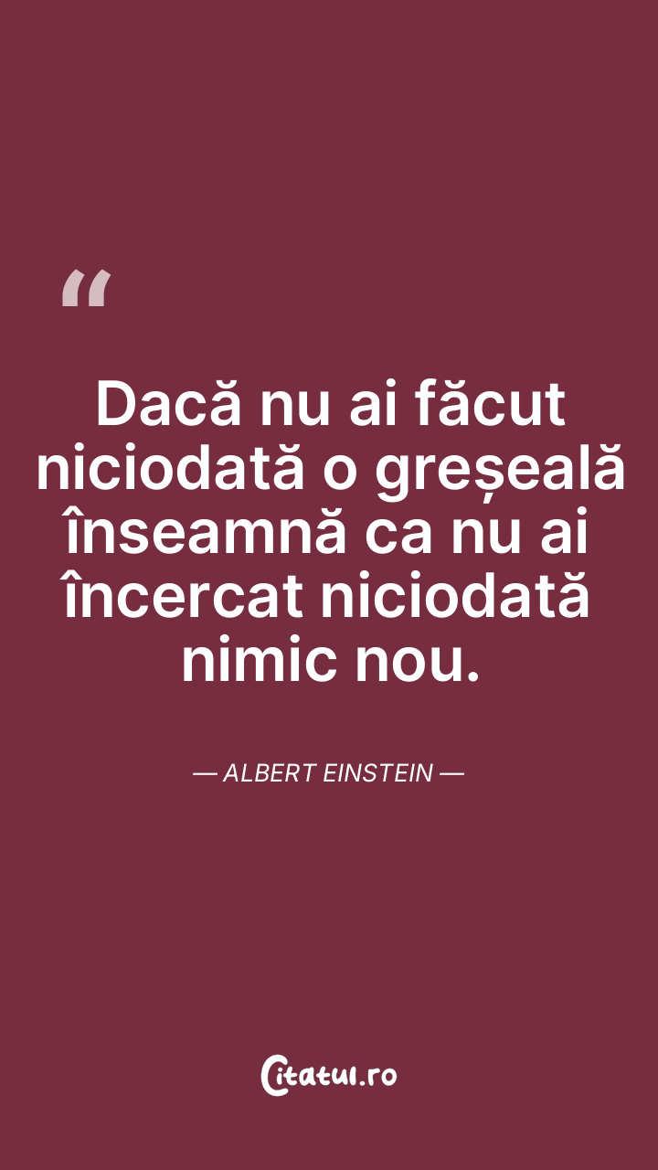 Dacă nu ai făcut niciodată o greșeală înseamnă ca nu ai încercat niciodată nimic nou. Albert Einstein