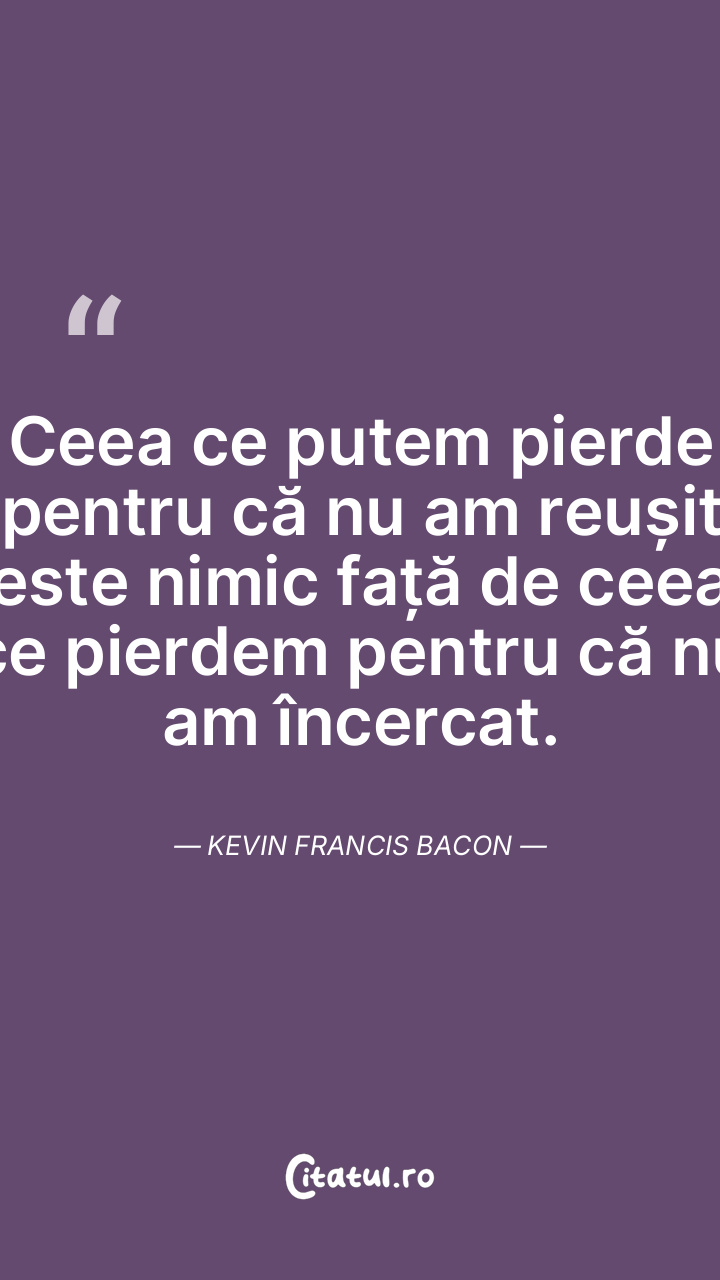 Ceea ce putem pierde pentru că nu am reușit este nimic față de ceea ce pierdem pentru că nu am încercat. Kevin Francis Bacon