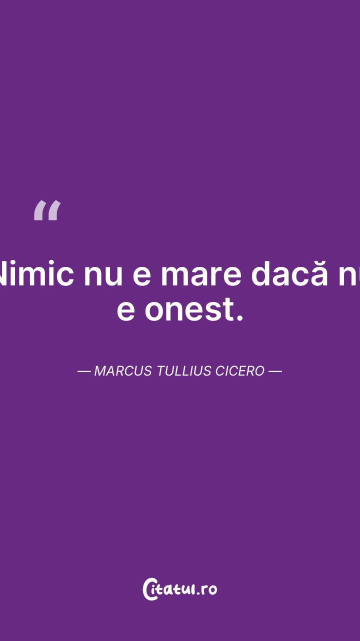 Nimic nu e mare dacă nu e onest. Marcus Tullius Ci...