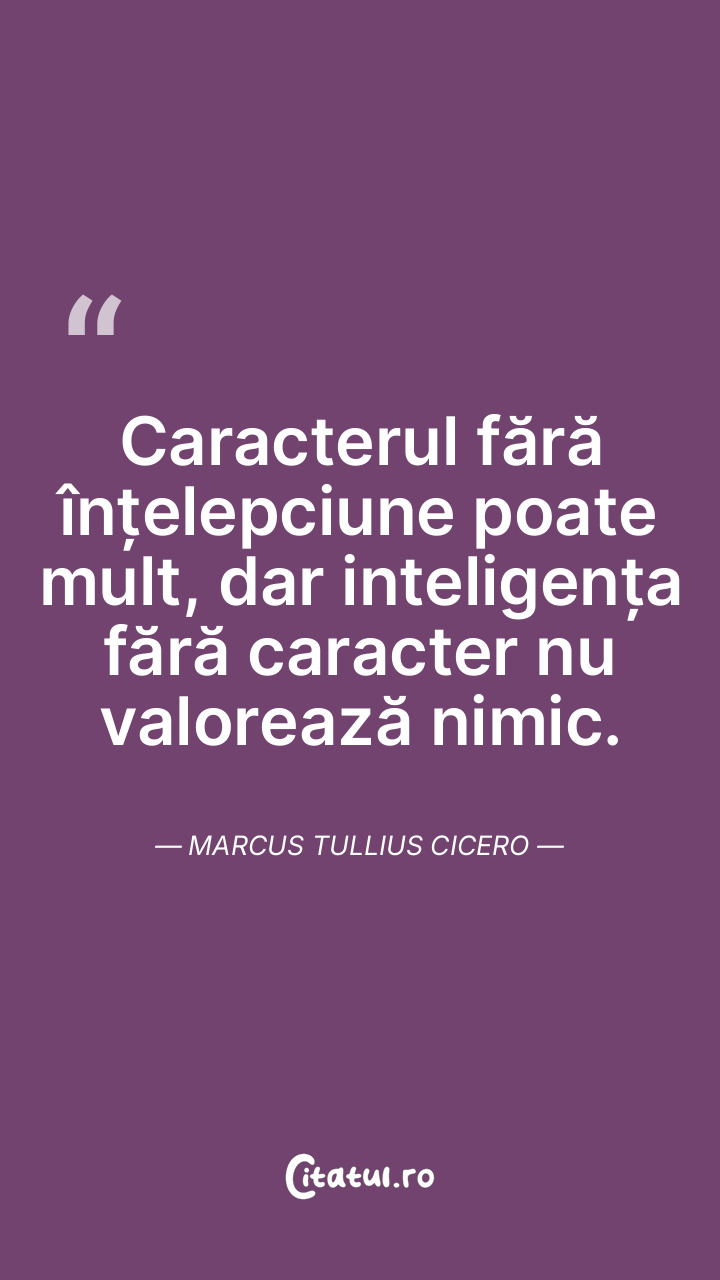 Caracterul fără înțelepciune poate mult, dar inteligența fără caracter nu valorează nimic. Marcus Tullius Cicero