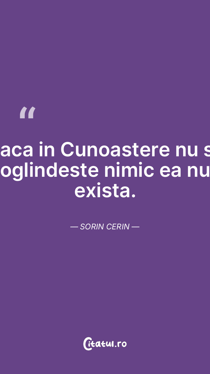 Daca in Cunoastere nu se oglindeste nimic ea nu exista. Sorin Cerin