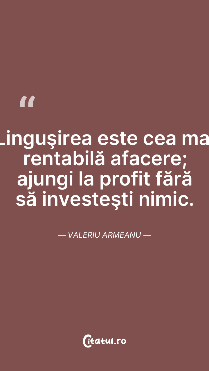 Linguşirea este cea mai rentabilă afacere; ajungi la profit fără să investeşti nimic. Valeriu Armeanu