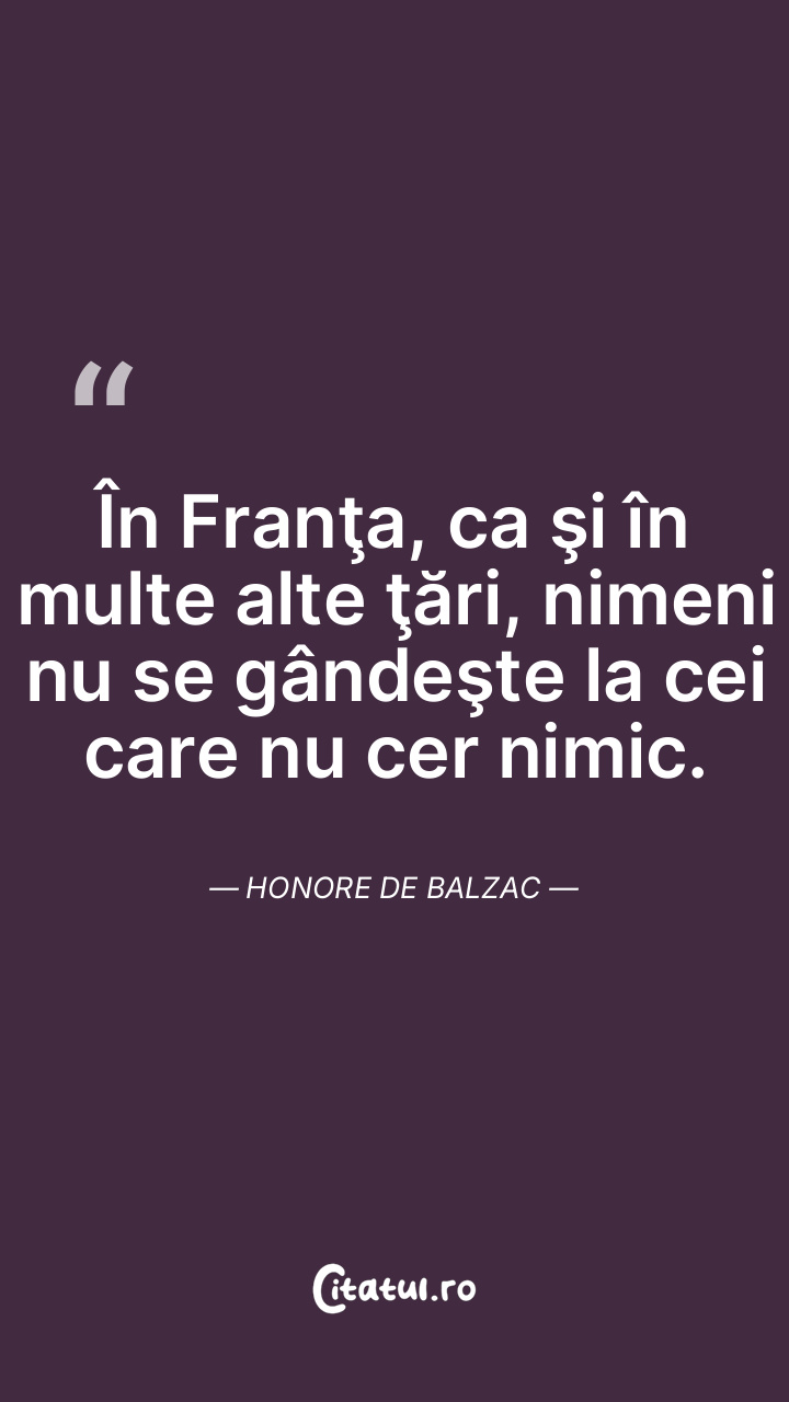 În Franţa, ca şi în multe alte ţări, nimeni nu se gândeşte la cei care nu cer nimic. Honore de Balzac