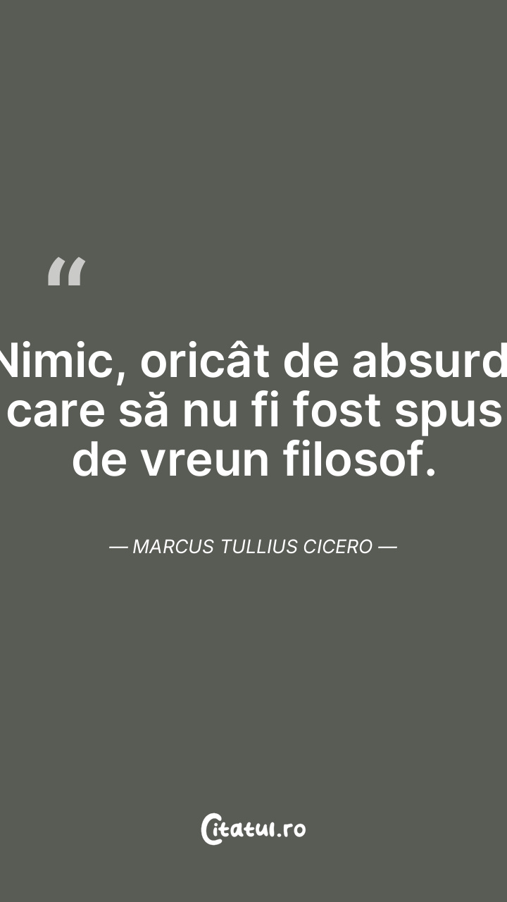 Nimic, oricât de absurd, care să nu fi fost spus de vreun filosof. Marcus Tullius Cicero