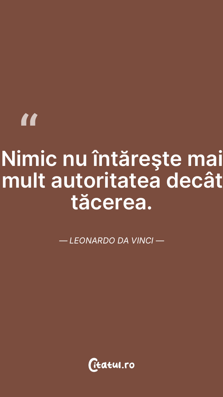 Nimic nu întăreşte mai mult autoritatea decât tăcerea. Leonardo da Vinci