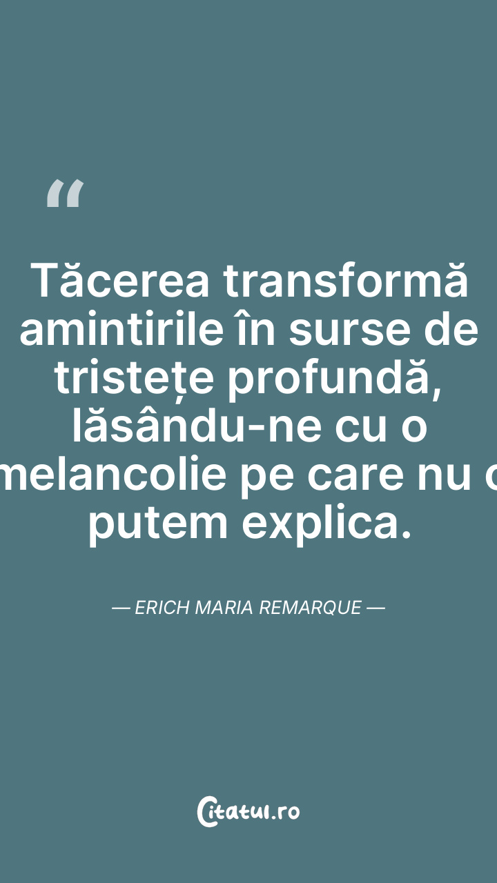 Tăcerea transformă amintirile în surse de tristețe profundă, lăsându-ne cu o melancolie pe care nu o putem explica. Erich Maria Remarque