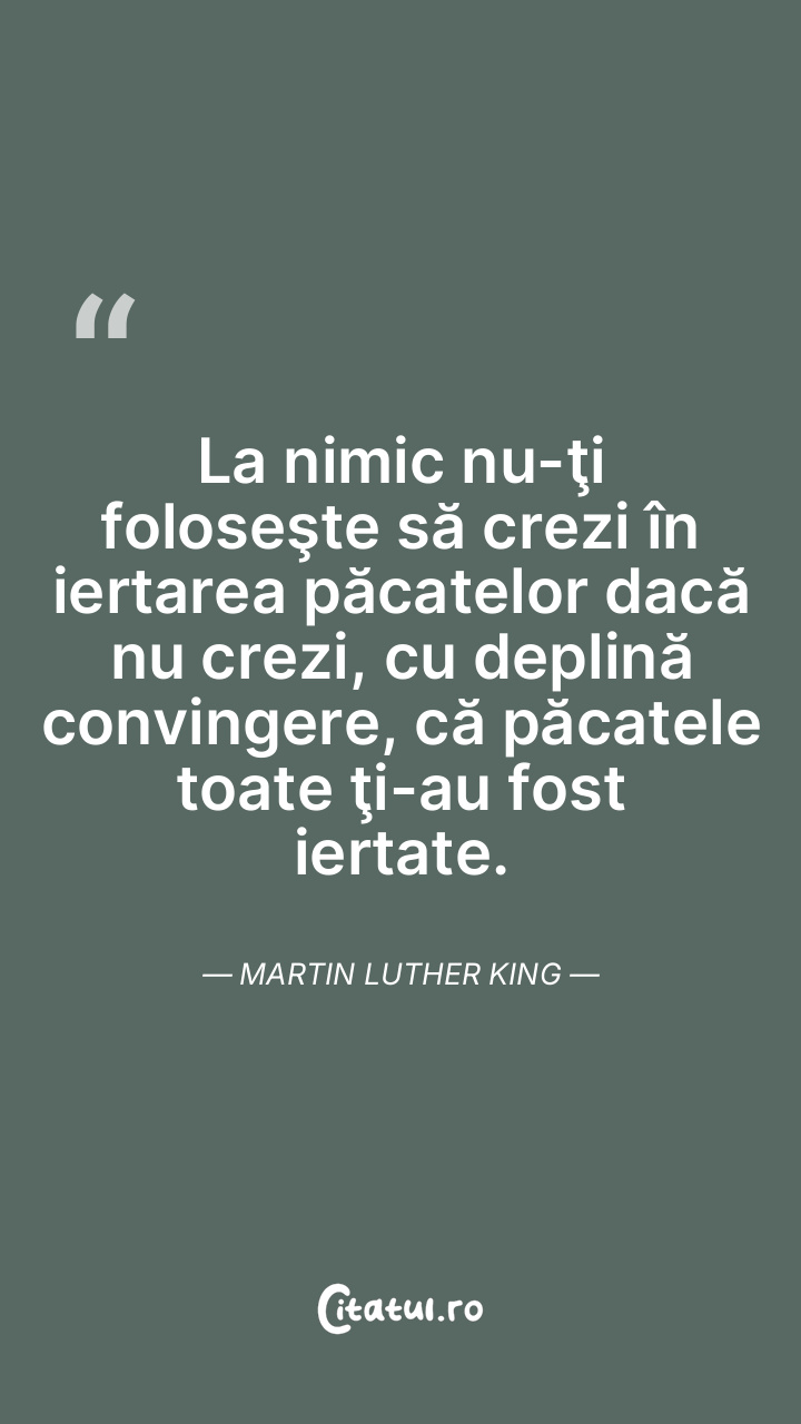 La nimic nu-ţi foloseşte să crezi în iertarea păcatelor dacă nu crezi, cu deplină convingere, că păcatele toate ţi-au fost iertate. Martin Luther King