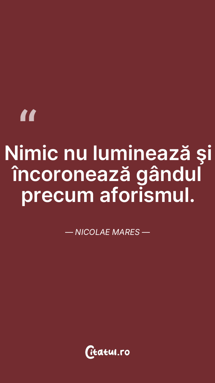 Nimic nu luminează şi încoronează gândul precum aforismul. Nicolae Mares