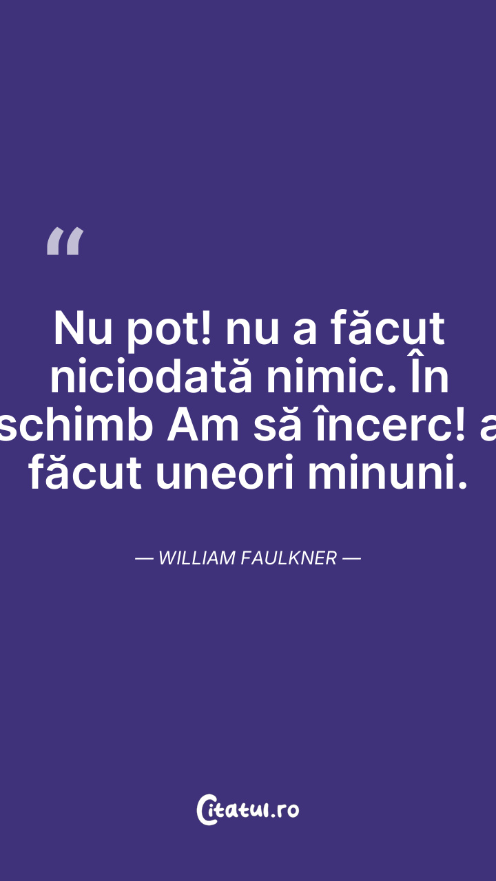 Nu pot! nu a făcut niciodată nimic. În schimb Am să încerc! a făcut uneori minuni. William Faulkner