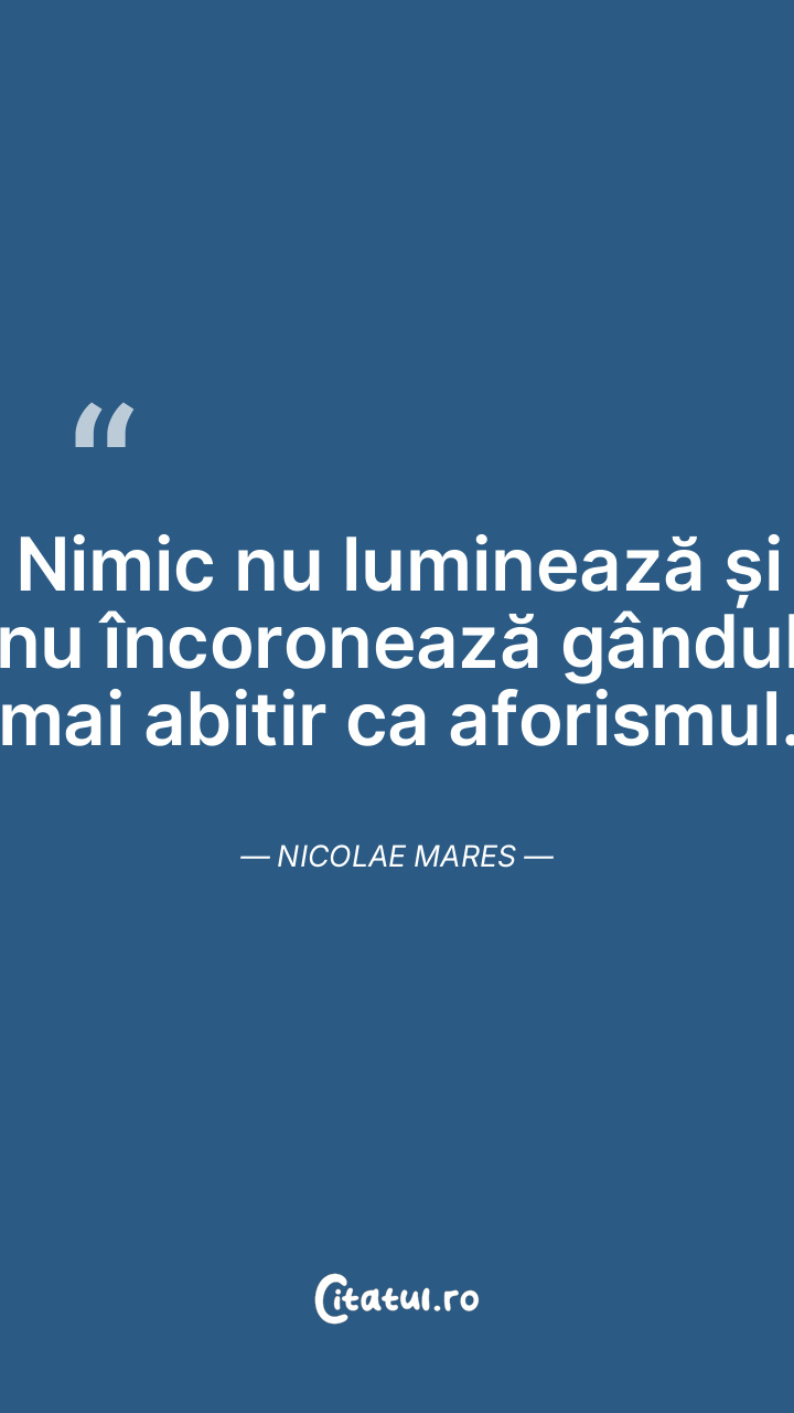 Nimic nu luminează și nu încoronează gândul mai abitir ca aforismul. Nicolae Mares