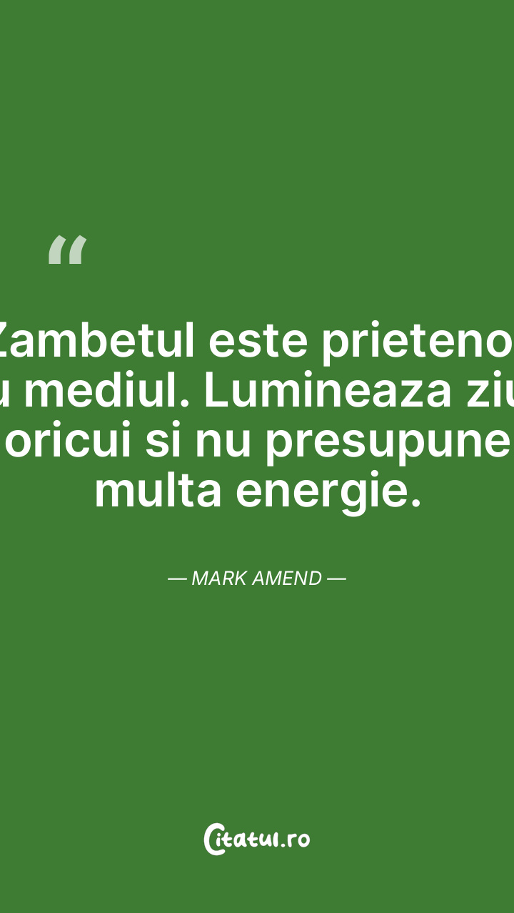 Zambetul este prietenos cu mediul. Lumineaza ziua oricui si nu presupune multa energie. Mark Amend