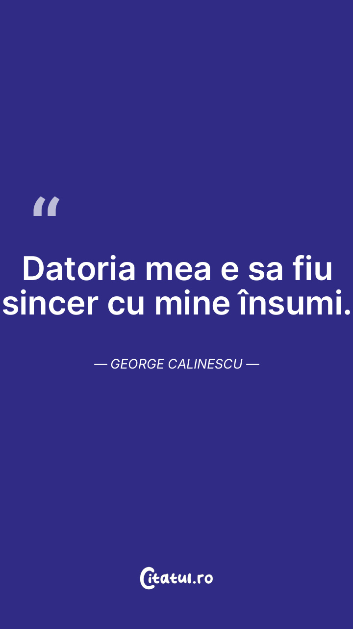 Datoria mea e sa fiu sincer cu mine însumi. George Calinescu