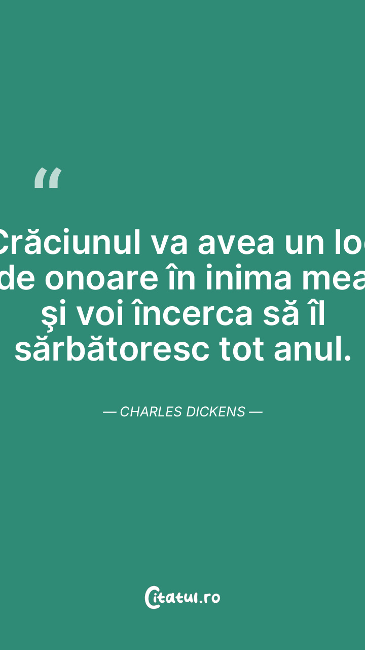 Crăciunul va avea un loc de onoare în inima mea şi voi încerca să îl sărbătoresc tot anul. Charles Dickens