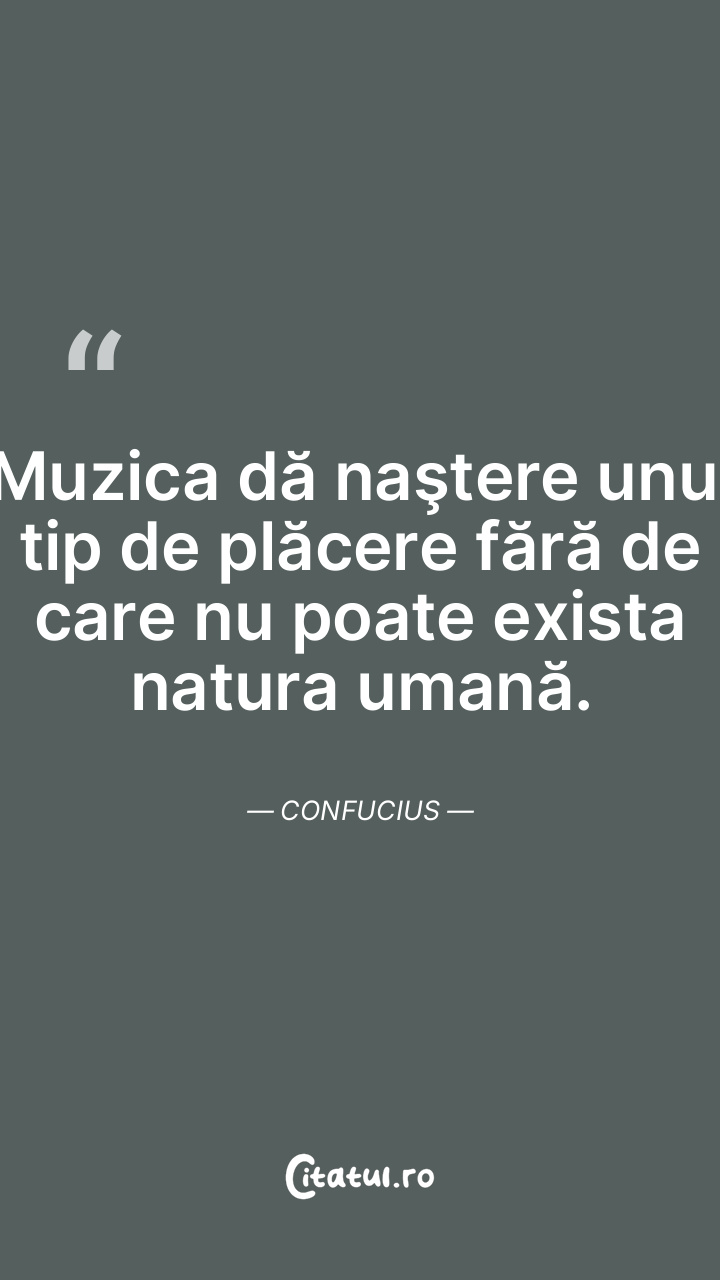 Muzica dă naştere unui tip de plăcere fără de care nu poate exista natura umană. Confucius