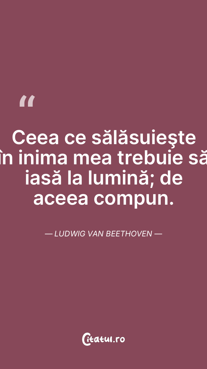 Ceea ce sălăsuieşte în inima mea trebuie să iasă la lumină; de aceea compun. Ludwig van Beethoven