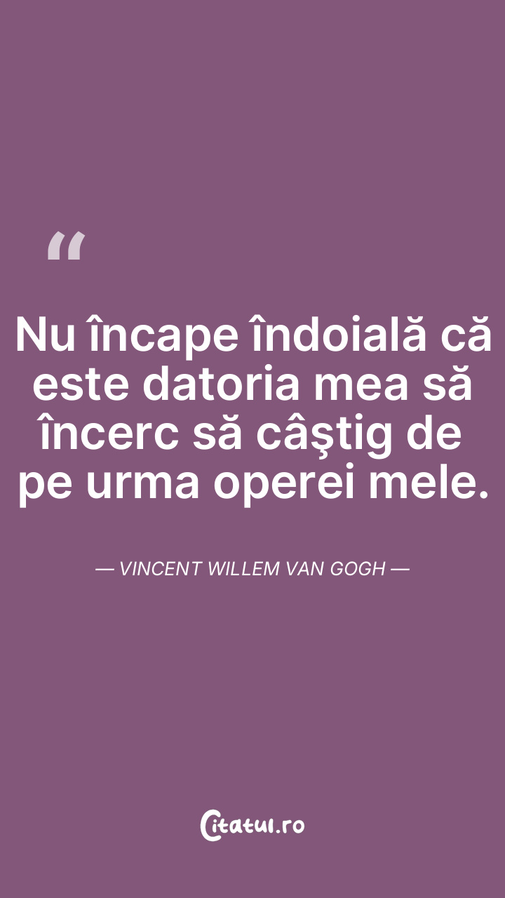 Nu încape îndoială că este datoria mea să încerc să câştig de pe urma operei mele. Vincent Willem van Gogh