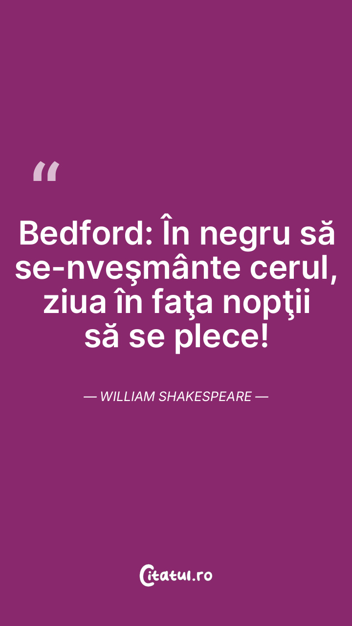 Bedford: În negru să se-nveşmânte cerul, ziua în faţa nopţii să se plece! William Shakespeare