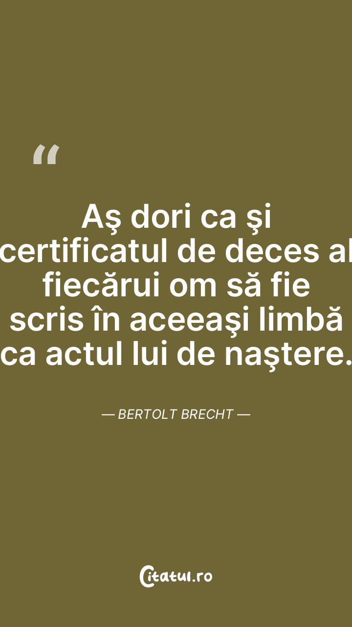 Aş dori ca şi certificatul de deces al fiecărui om să fie scris în aceeaşi limbă ca actul lui de naştere. Bertolt Brecht
