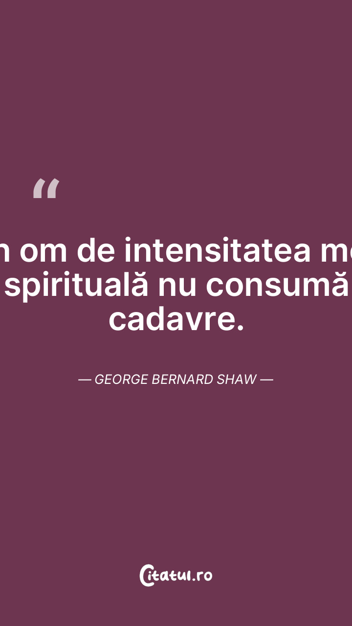 Un om de intensitatea mea spirituală nu consumă cadavre. George Bernard Shaw