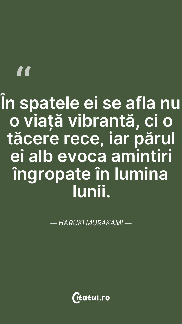 În spatele ei se afla nu o viață vibrantă, ci o tăcere rece, iar părul ei alb evoca amintiri îngropate în lumina lunii. Haruki Murakami