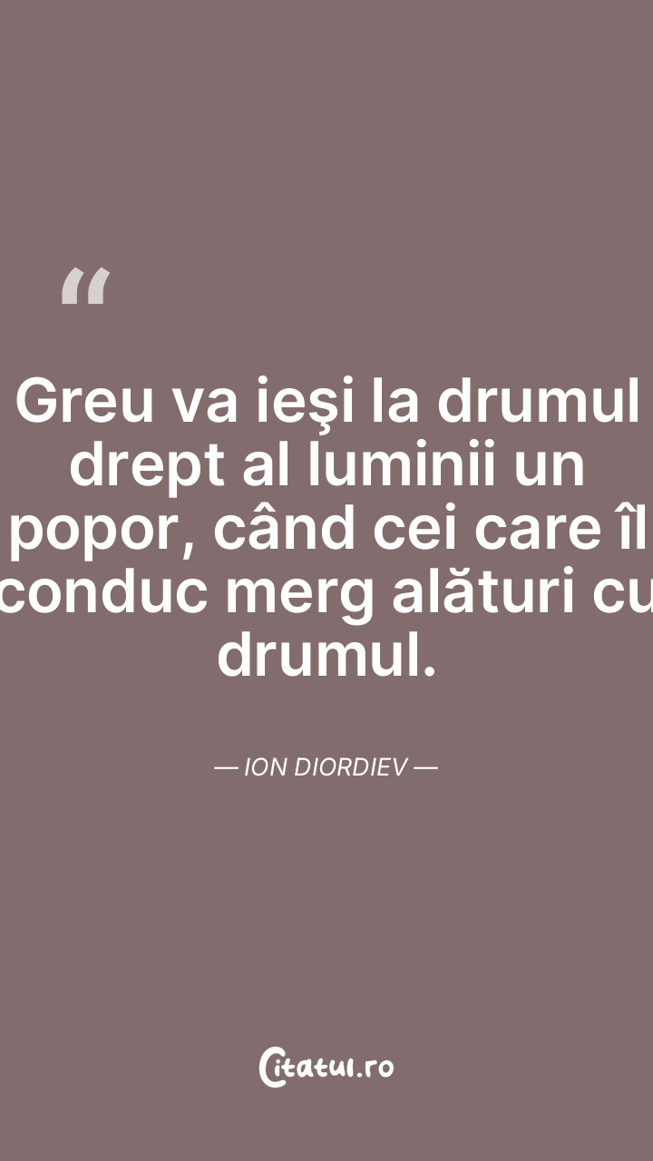Greu va ieşi la drumul drept al luminii un popor, când cei care îl conduc merg alături cu drumul. Ion Diordiev