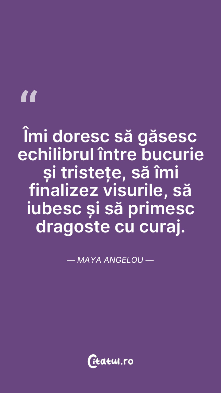 Îmi doresc să găsesc echilibrul între bucurie și tristețe, să îmi finalizez visurile, să iubesc și să primesc dragoste cu curaj. Maya Angelou