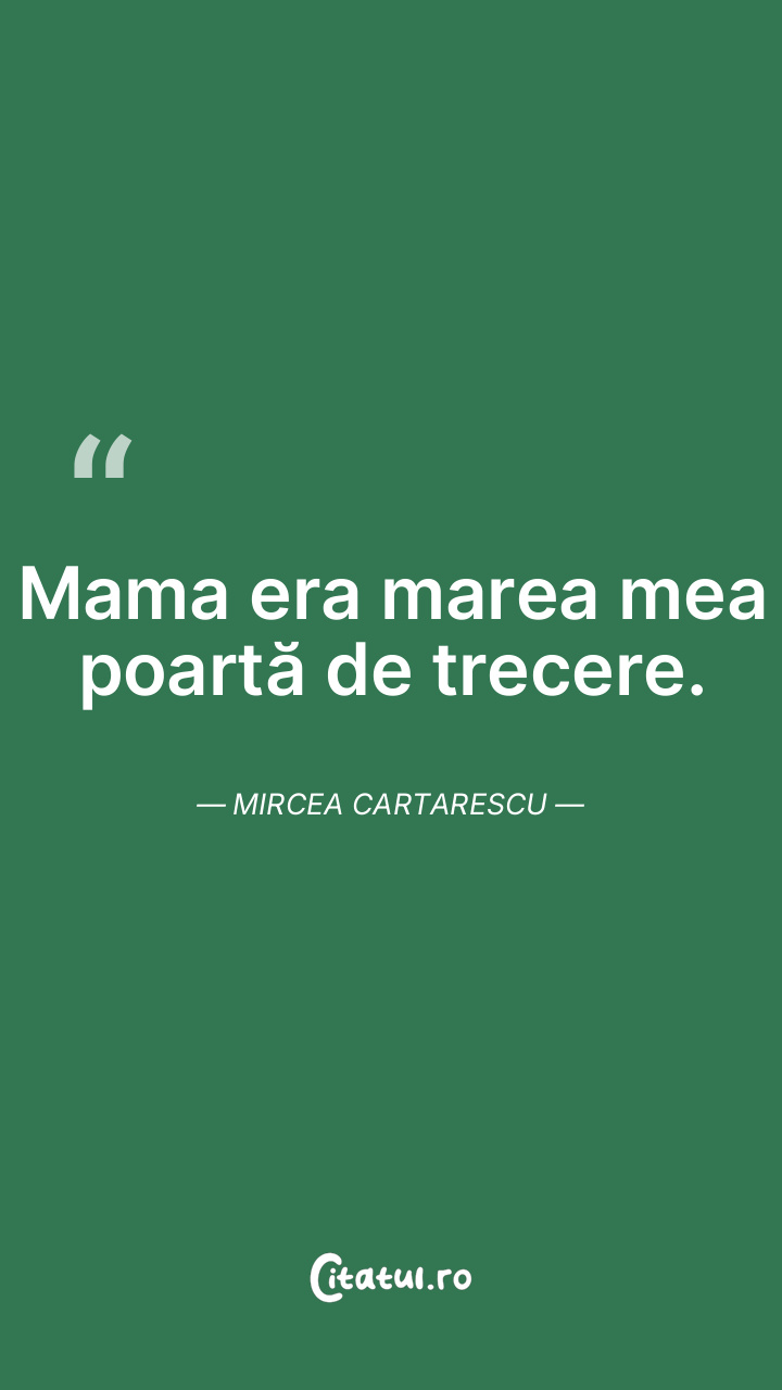 Mama era marea mea poartă de trecere. Mircea Carta...