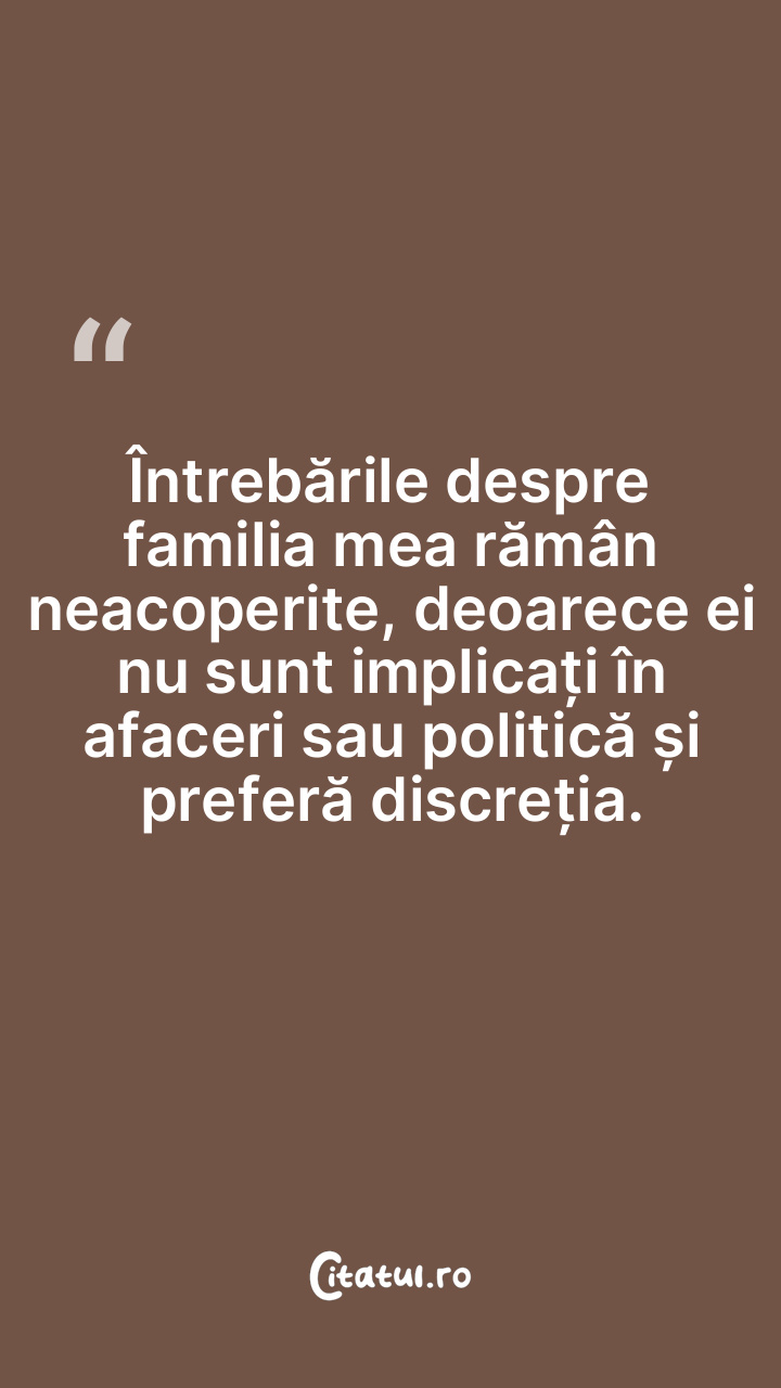 Întrebările despre familia mea rămân neacoperite, deoarece ei nu sunt implicați în afaceri sau politică și preferă discreția.