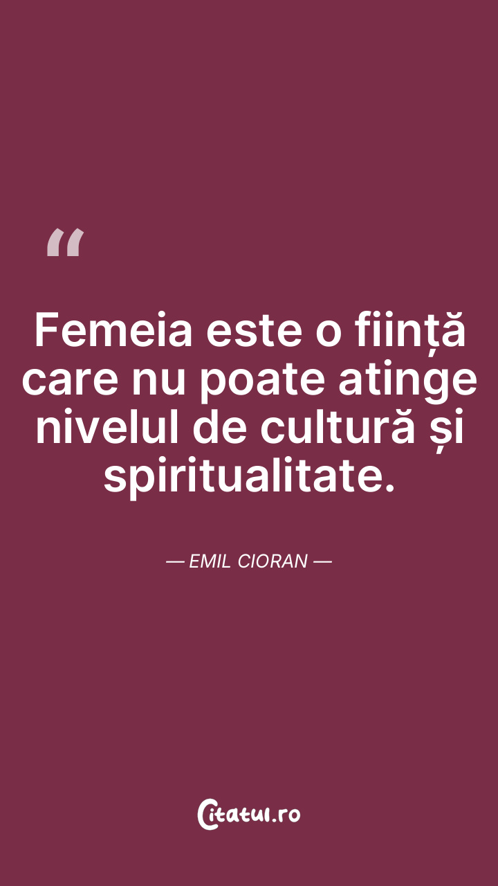 Femeia este o ființă care nu poate atinge nivelul de cultură și spiritualitate. Emil Cioran