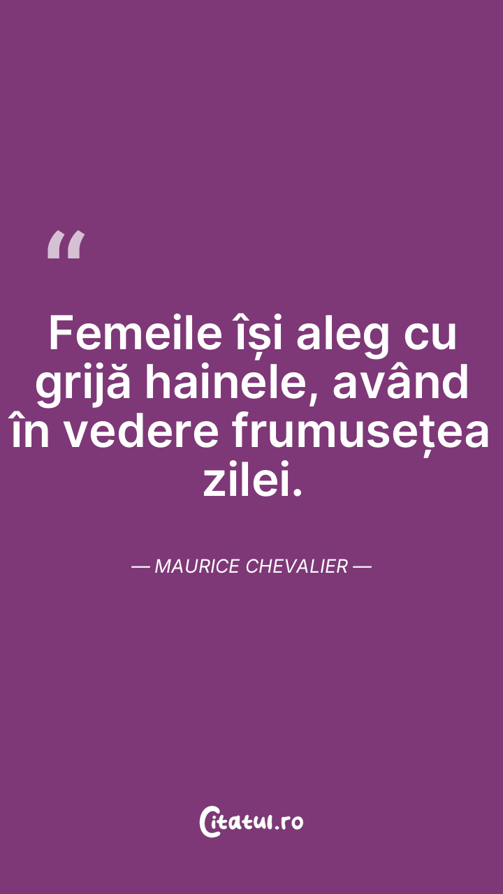 Femeile își aleg cu grijă hainele, având în vedere frumusețea zilei. Maurice Chevalier