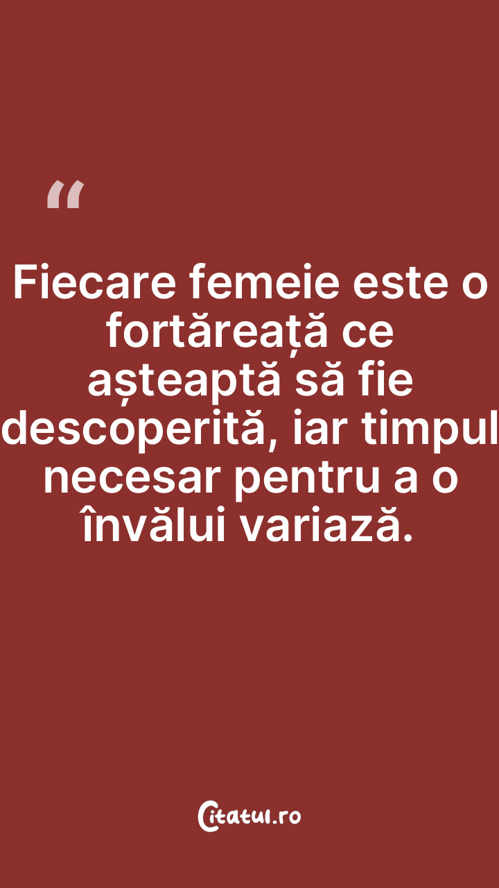 Fiecare femeie este o fortăreață ce așteaptă să fie descoperită, iar timpul necesar pentru a o învălui variază.