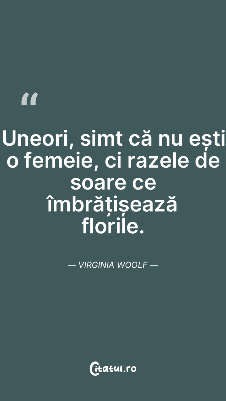 Uneori, simt că nu ești o femeie, ci razele de soare ce îmbrățișează florile. Virginia Woolf