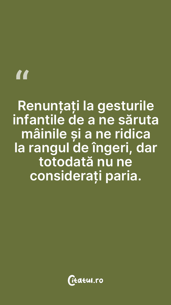 Renunțați la gesturile infantile de a ne săruta mâinile și a ne ridica la rangul de îngeri, dar totodată nu ne considerați paria.