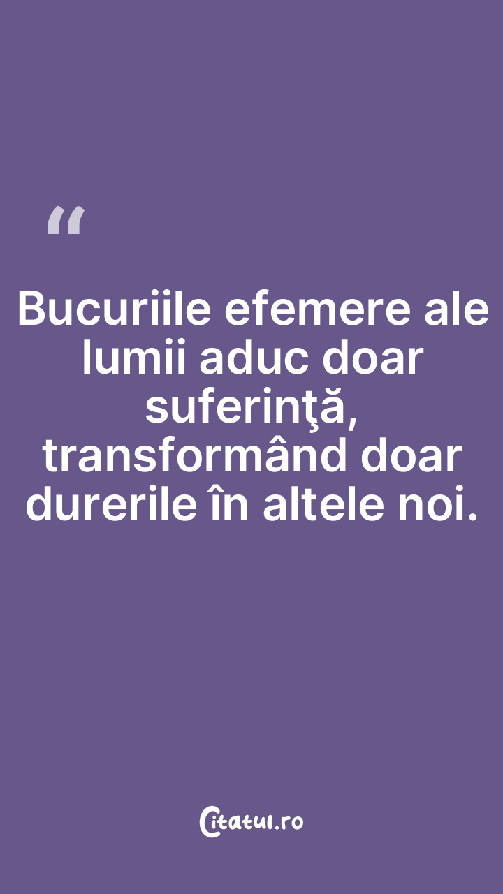 Bucuriile efemere ale lumii aduc doar suferinţă, transformând doar durerile în altele noi.