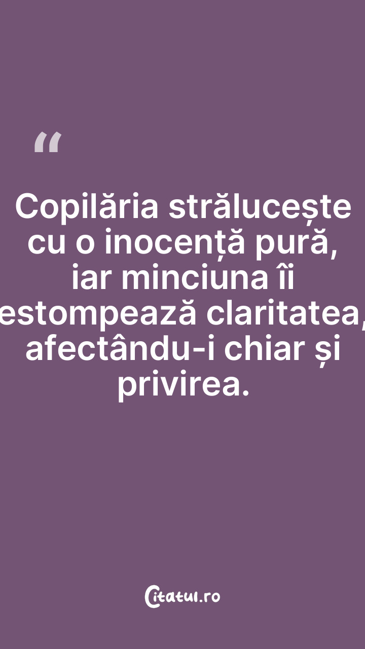 Copilăria strălucește cu o inocență pură, iar minciuna îi estompează claritatea, afectându-i chiar și privirea.