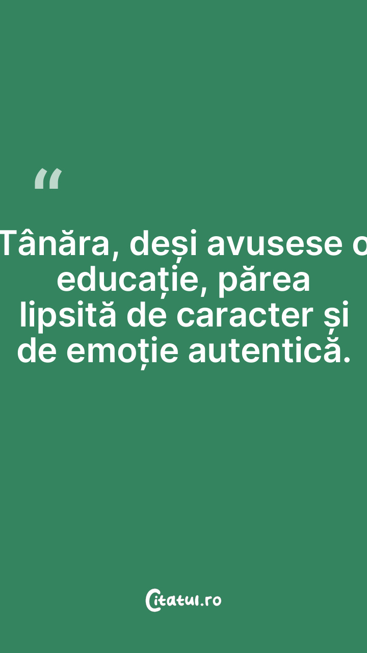 Tânăra, deși avusese o educație, părea lipsită de caracter și de emoție autentică.