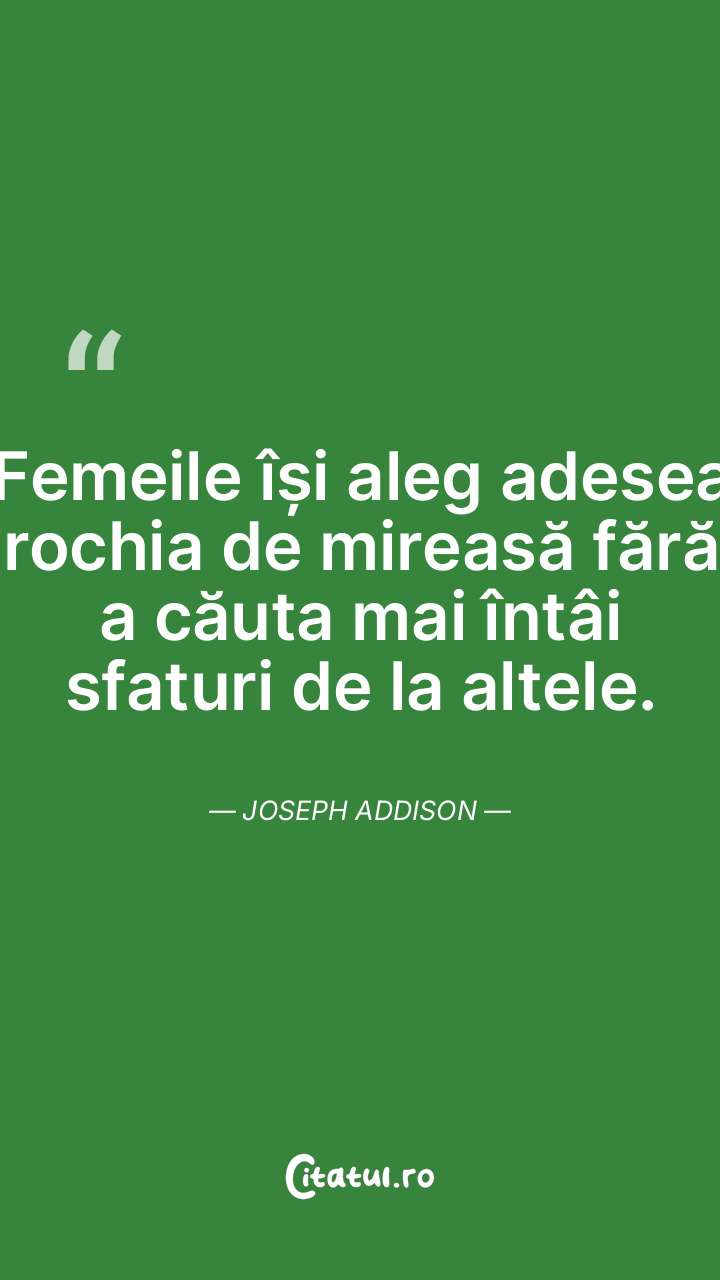 Femeile își aleg adesea rochia de mireasă fără a căuta mai întâi sfaturi de la altele. Joseph Addison