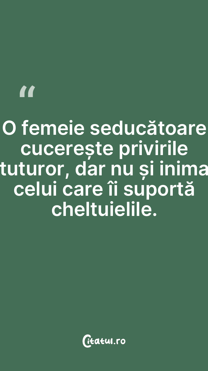 O femeie seducătoare cucerește privirile tuturor, dar nu și inima celui care îi suportă cheltuielile.