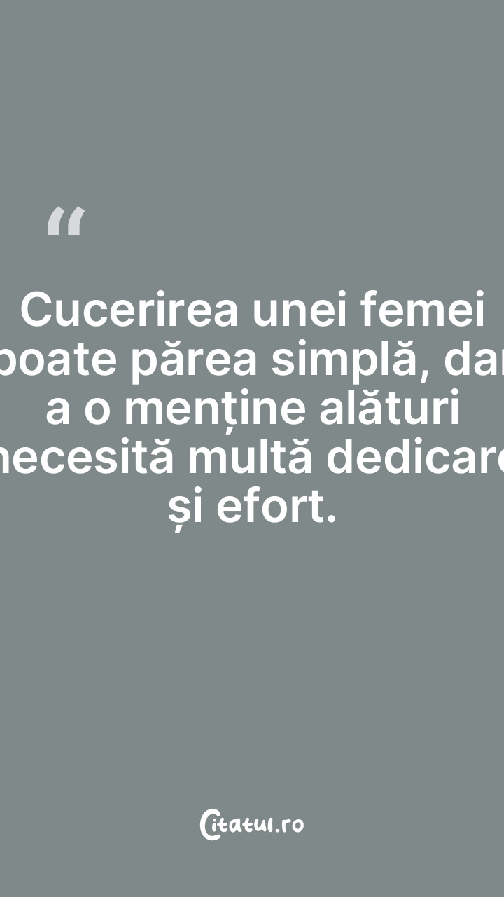 Cucerirea unei femei poate părea simplă, dar a o menține alături necesită multă dedicare și efort.
