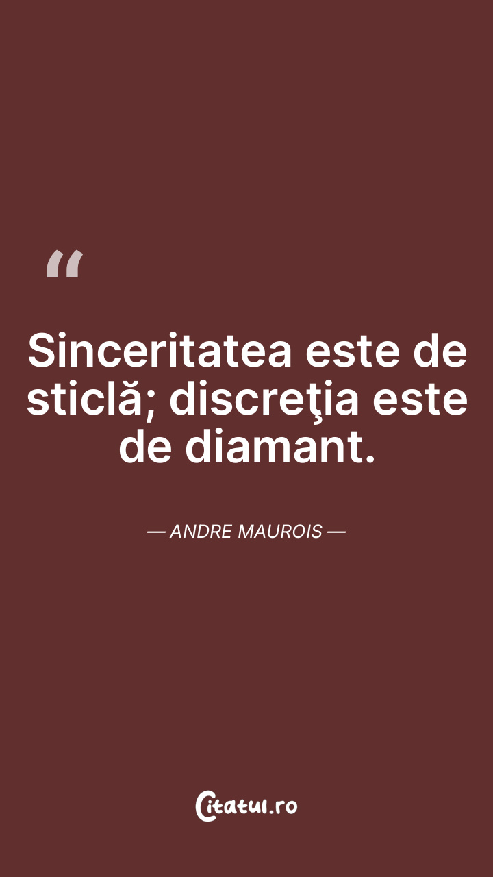 Sinceritatea este de sticlă; discreţia este de diamant. Andre Maurois