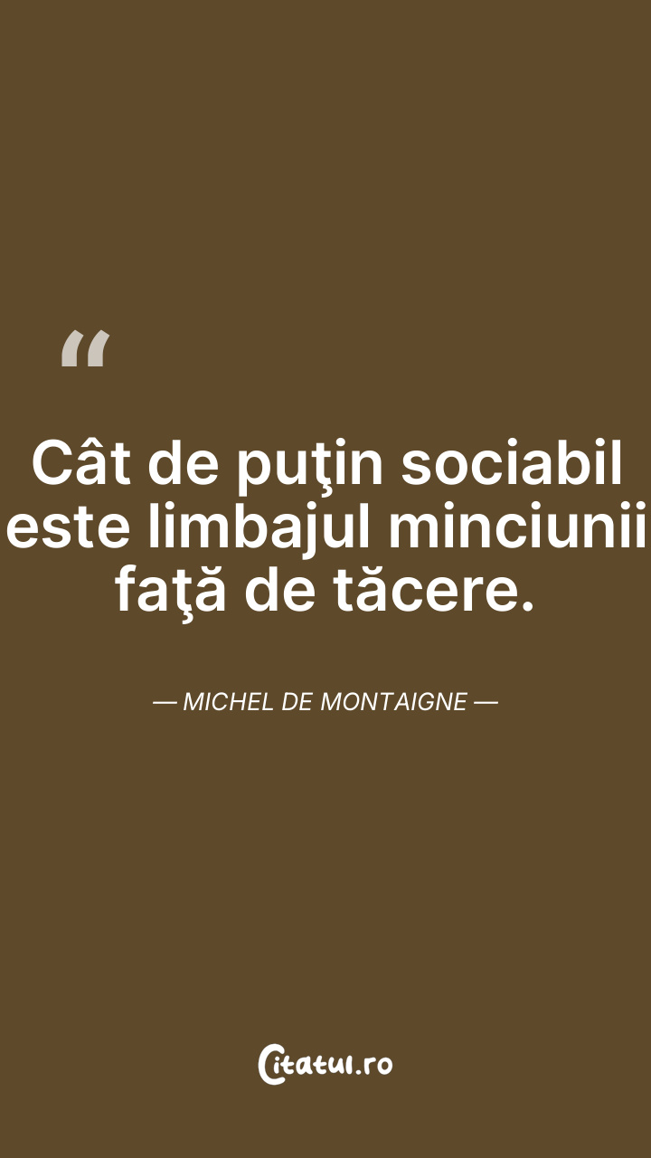 Cât de puţin sociabil este limbajul minciunii faţă de tăcere. Michel de Montaigne