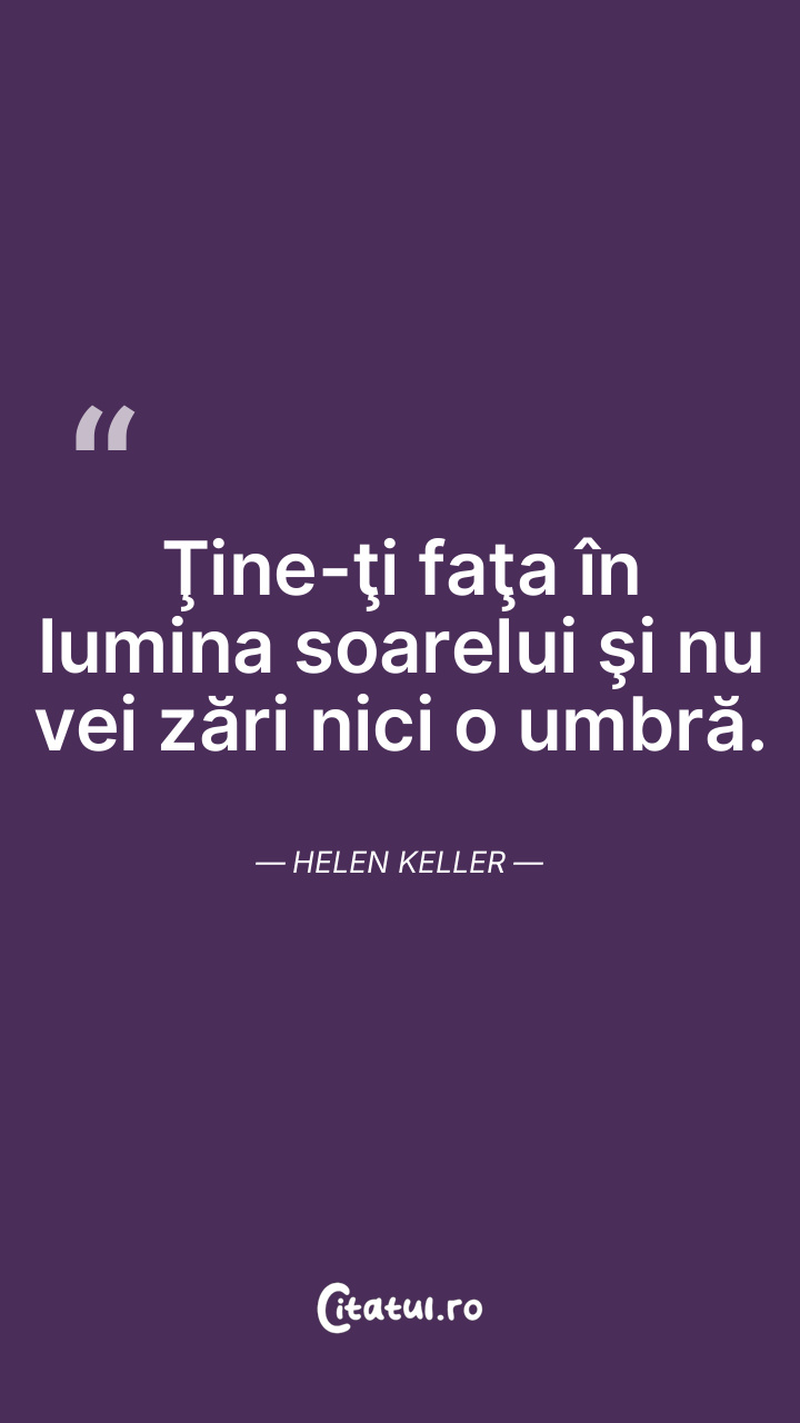 Ţine-ţi faţa în lumina soarelui şi nu vei zări nici o umbră. Helen Keller