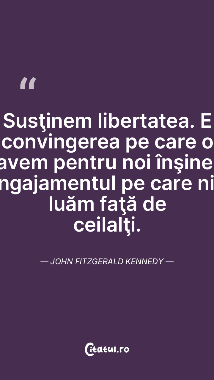 Susţinem libertatea. E convingerea pe care o avem pentru noi înşine, angajamentul pe care ni-l luăm faţă de ceilalţi. John Fitzgerald Kennedy