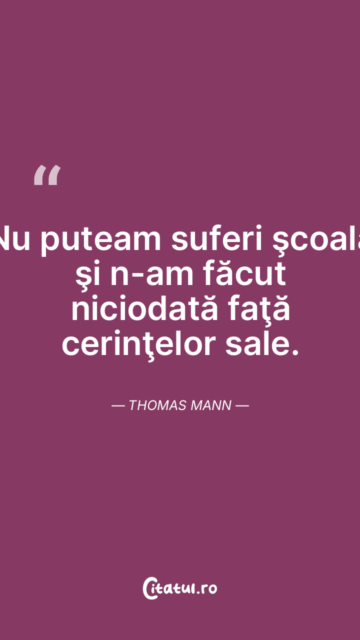 Nu puteam suferi şcoala şi n-am făcut niciodată faţă cerinţelor sale. Thomas Mann