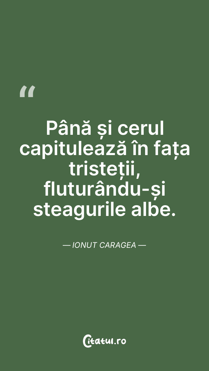 Până și cerul capitulează în fața tristeții, fluturându-și steagurile albe. Ionut Caragea