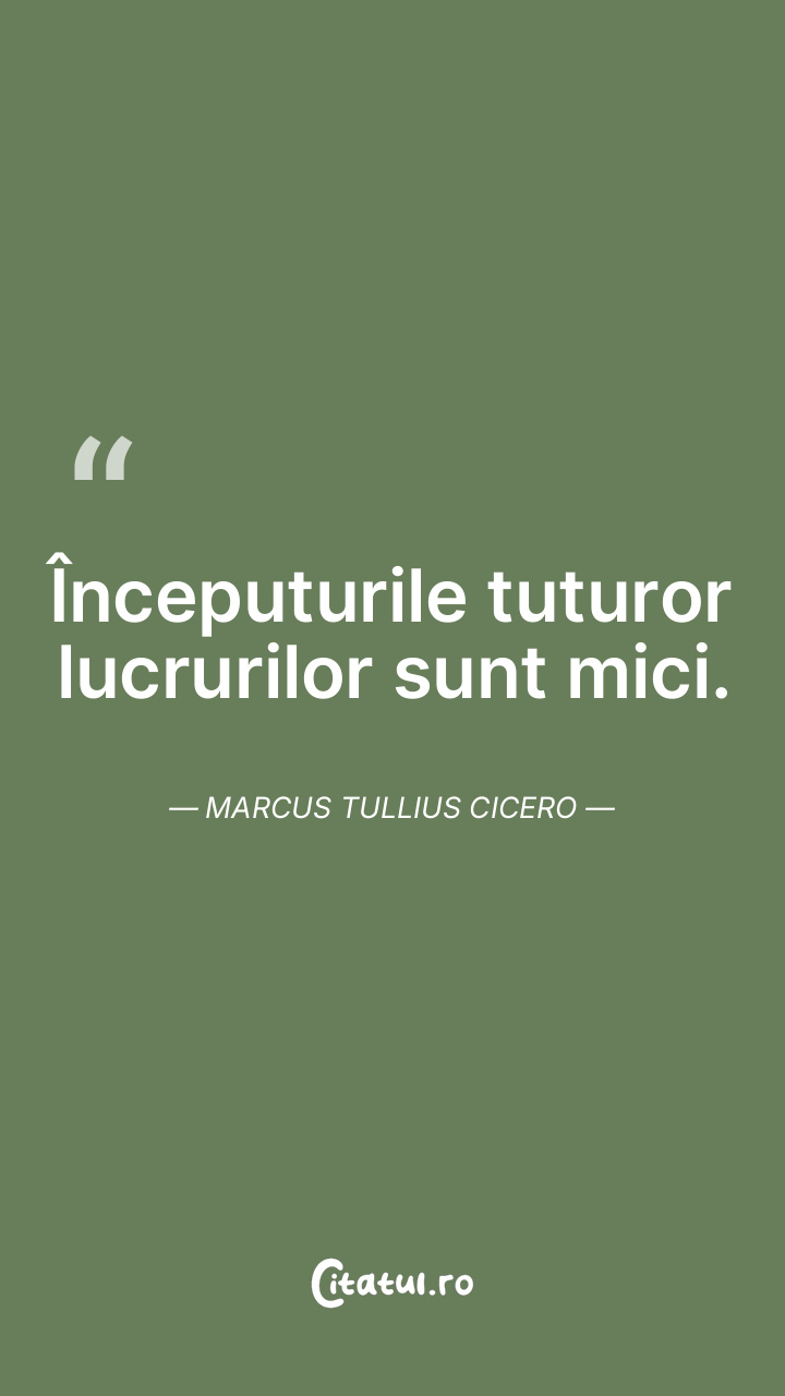 ÃŽnceputurile tuturor lucrurilor sunt mici. Marcus Tullius Cicero